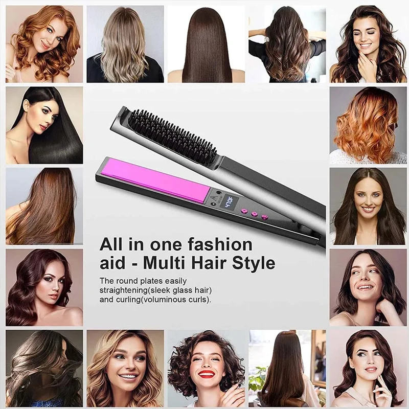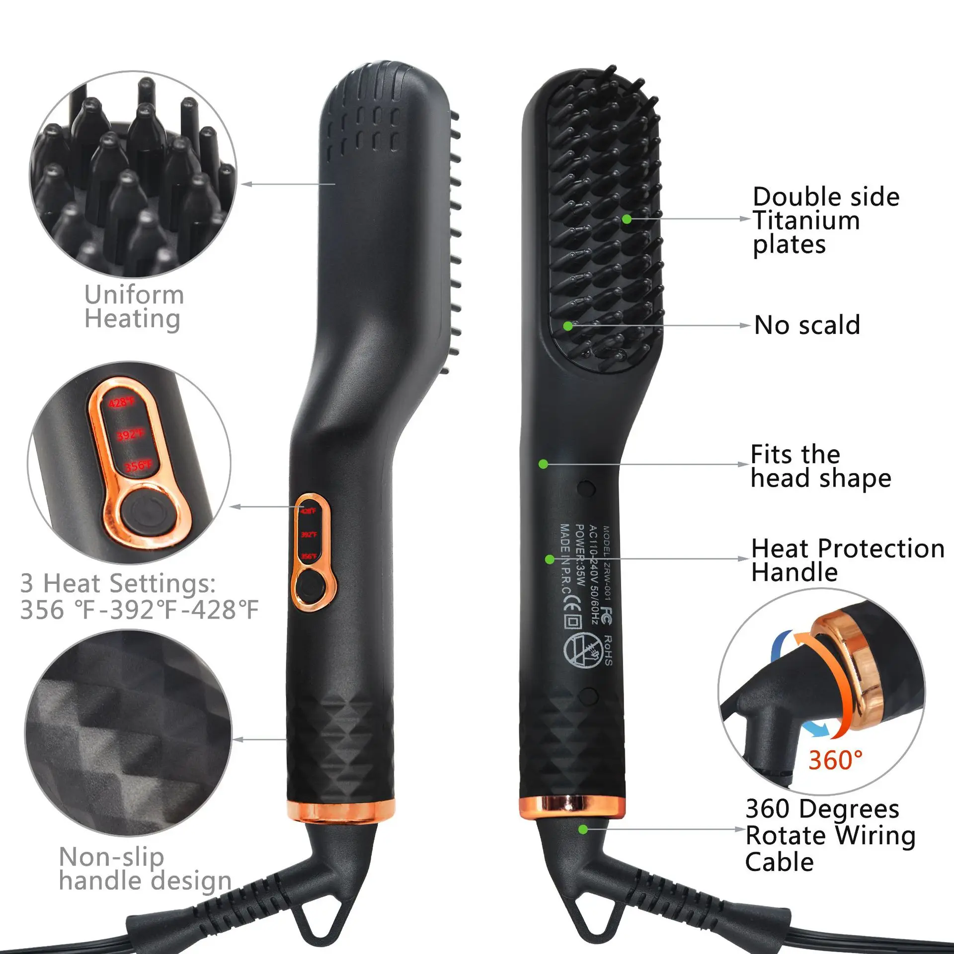 Men Beard Comb Set Hair Straightener Brush with Beard Oil Hair Curler Straightening Beard Straightener for Men Styling Tools
